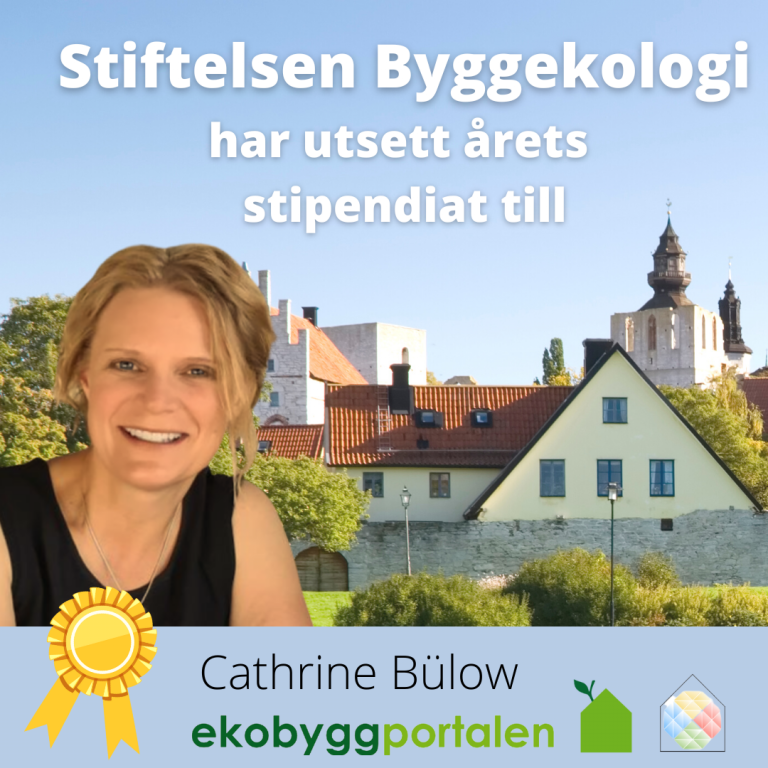 ”Stiftelsen Byggekologi har tilldelat Cathrine Bülow stipendium, om 15 000 kr, som med sitt arbete visar att på att det är möjligt att redan idag organisera ett modernt liv med minsta möjliga miljöbelastning gällande den byggda miljön.